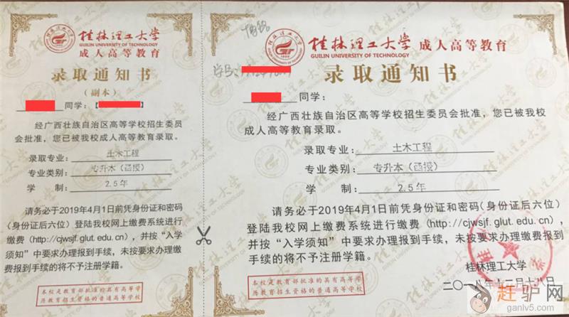 学生一经录取,入学注册后,修完教学计划规定的全部课程,成绩合格者,由广西师范学院颁发成人高考教育本科、专科毕业证书,电子注册,国家承认学历g a n l v 5 c o m。对符合条件的本科毕业生授予广西师范学院成人教育学士学位。